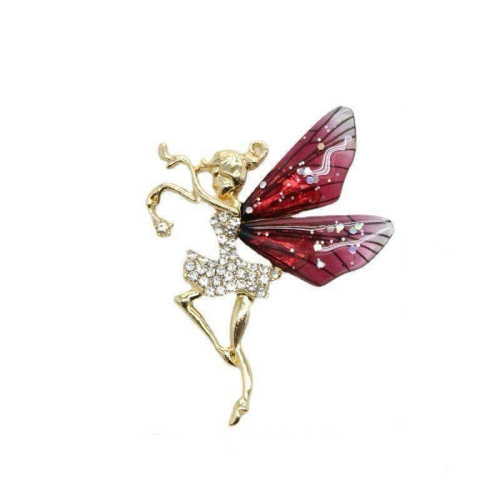 بروش (دبوس) فتاة الفراشة بأجنحة حمراء - ذهبي