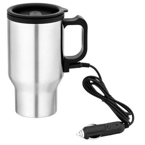 كوب تسخين للسيارة من الفولاذ المقاوم للصدأ والمحافظ على الحرارة مع فتحة شرب - رمادي