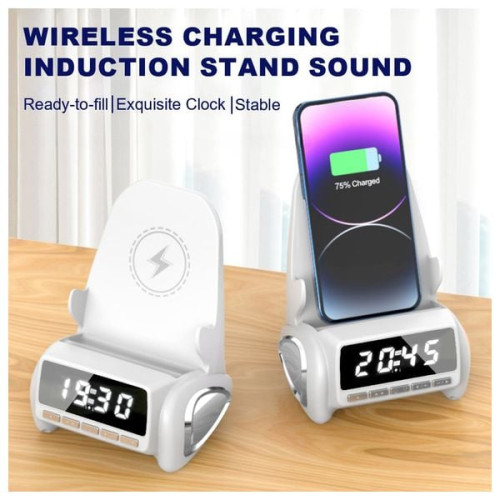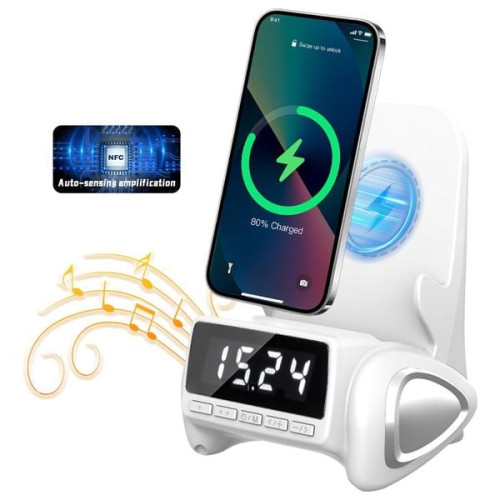 يقدم جهاز MGTU حامل متعدد الوظائف – شاحن لاسلكي وبنك طاقة ومكبر صوت وإضاءة قابلة للتعديل وساعة رقمية في تصميم أنيق. يدعم الشحن اللاسلكي Qi ويملك بنك طاقة كبير لتزويد أجهزتك بالطاقة أينما كنت. يشغّل مكبر صوت HiFi يملأ الغرفة صوتاً واضحاً من دون الحاجة إلى البلوتوث بفضل خاصية الاستشعار الذكي. الإضاءة المحيطية قابلة لتغيير الألوان، كما يعرض الوقت بوضوح على شاشة الساعة الرقمية. متوافق مع معظم هواتف Android وiPhone وiPad ومثالي للمكتب والمنزل كهدية أنيقة.