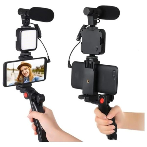 مثبت هاتف ذكي مع عدة تصوير ومايكروفون - AY-49 - اسود
