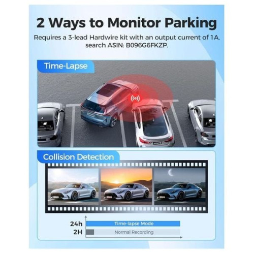 يدعم التسجيل المستمر 24 ساعة: عند توصيله بـ OBD Hardwire Kit.