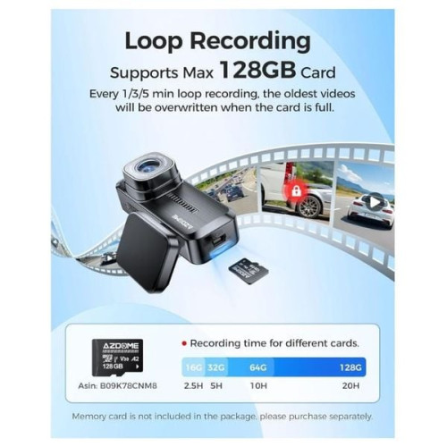 سعة التخزين: يدعم بطاقات microSDXC حتى 128GB لتسجيل أطول مدة ممكنة.