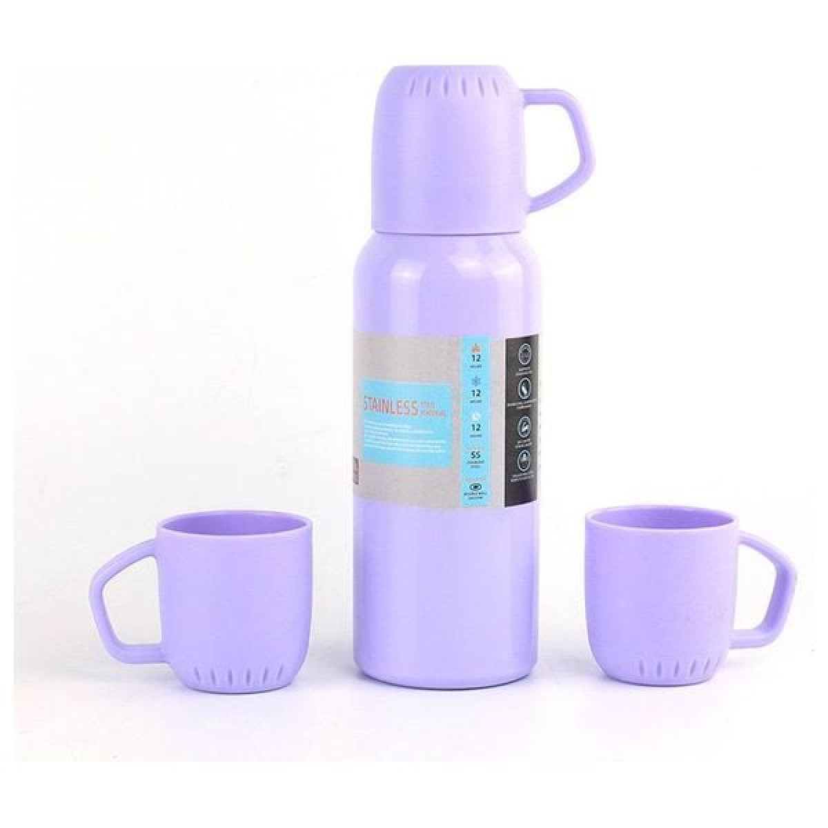 طقم ترمس 3 أكوابالترمس يحافظ على المشروب ساخنًا أو باردًا لمدة 12 ساعةستانلس ستيليحتوي على قفل أمان لمنع التسربالسعة: 580 مل