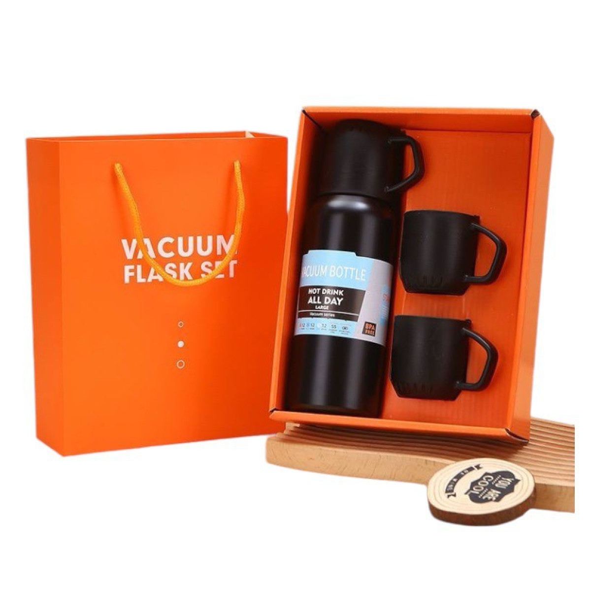سيت ترمز حافظ الحرارة والبرودة مع ٣ اقداحترمز يحفظ حرارة المشروب ( بارد او ساخن ) لمدة 12 ساعةستانلس ستيل يحتوي على قفل امان لمنع التسربالسعة : 580 مل